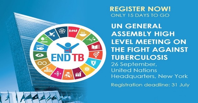 There are 15 days left to register for the first-ever UN High-Level Meeting (HLM) on TB, which will be held on 26 September 2018 in New York. The UN HLM will be held on the theme “United to End Tuberculosis: An Urgent Global Response to a Global Epidemic” and will bring together Heads of State to commit to accelerated action to end TB by 2030.