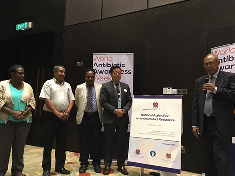 In response to this call, the National Department of Health (NDOH) took the lead in drafting the National Action Plan on Antimicrobial Resistance 2017-2020, together with the Department of Agriculture and Livestock and the Department of Environment and Conservation and with technical assistance from WHO. This important document was launched during a ceremony held in Port Moresby on 20 November 2017. In the said event, the Country Situation Analysis was presented. Messages were delivered by the Health Secretary Pascoe Kase, and Director of Conservation and Environment Protection Authority, Manino Virobo.