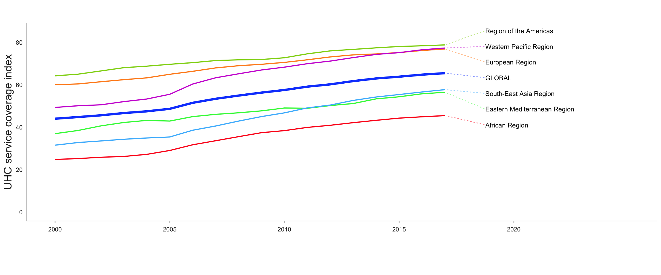 Although data post-2017 are not yet available, the COVID-19 pandemic is likely to have caused progress towards UHC to stall or reverse in 2020 and 2021 in many countries.