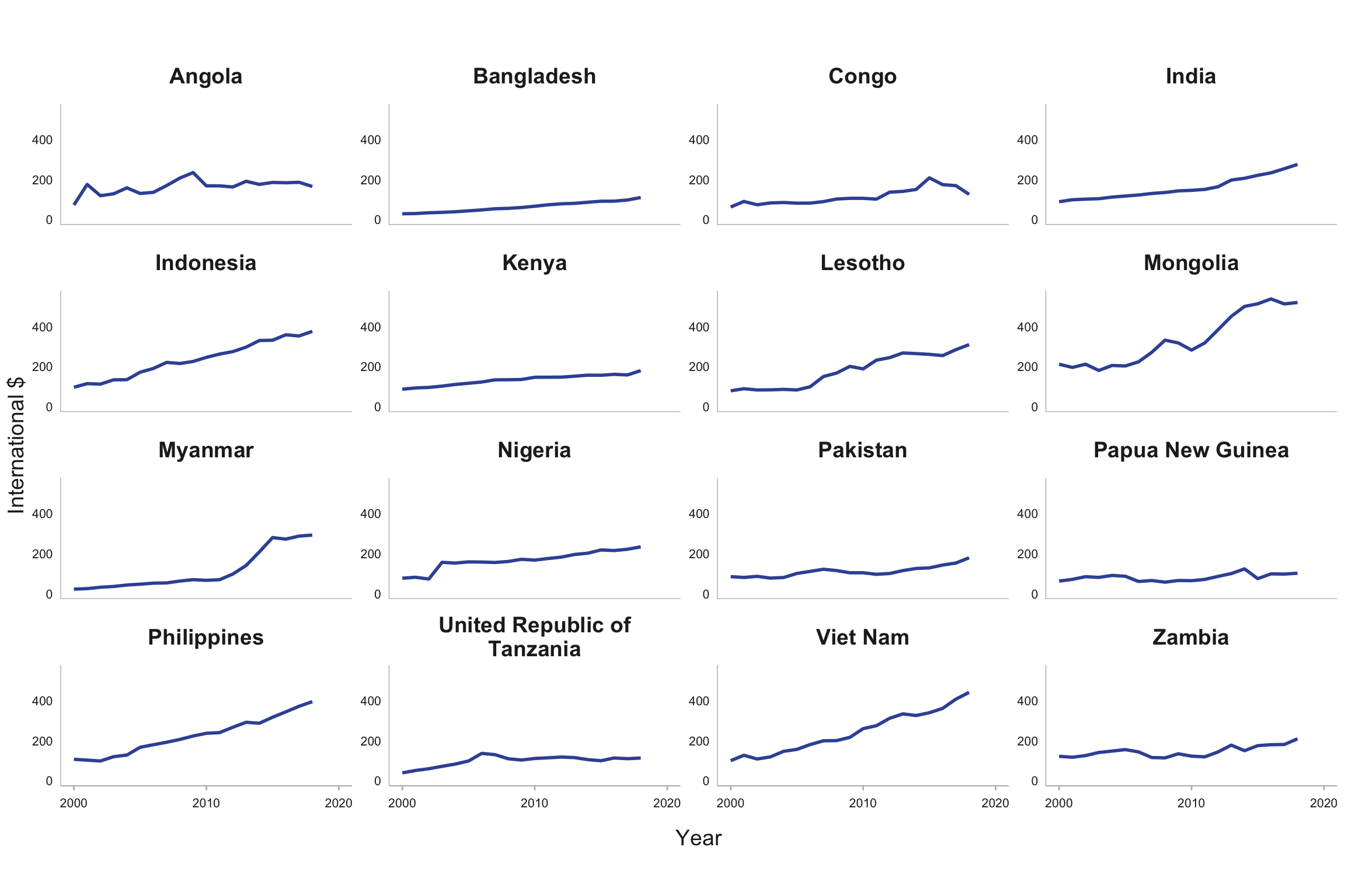 Fig. 6.1.5 Current health expenditure per capita, 30 high TB burden countries, 2000–2018