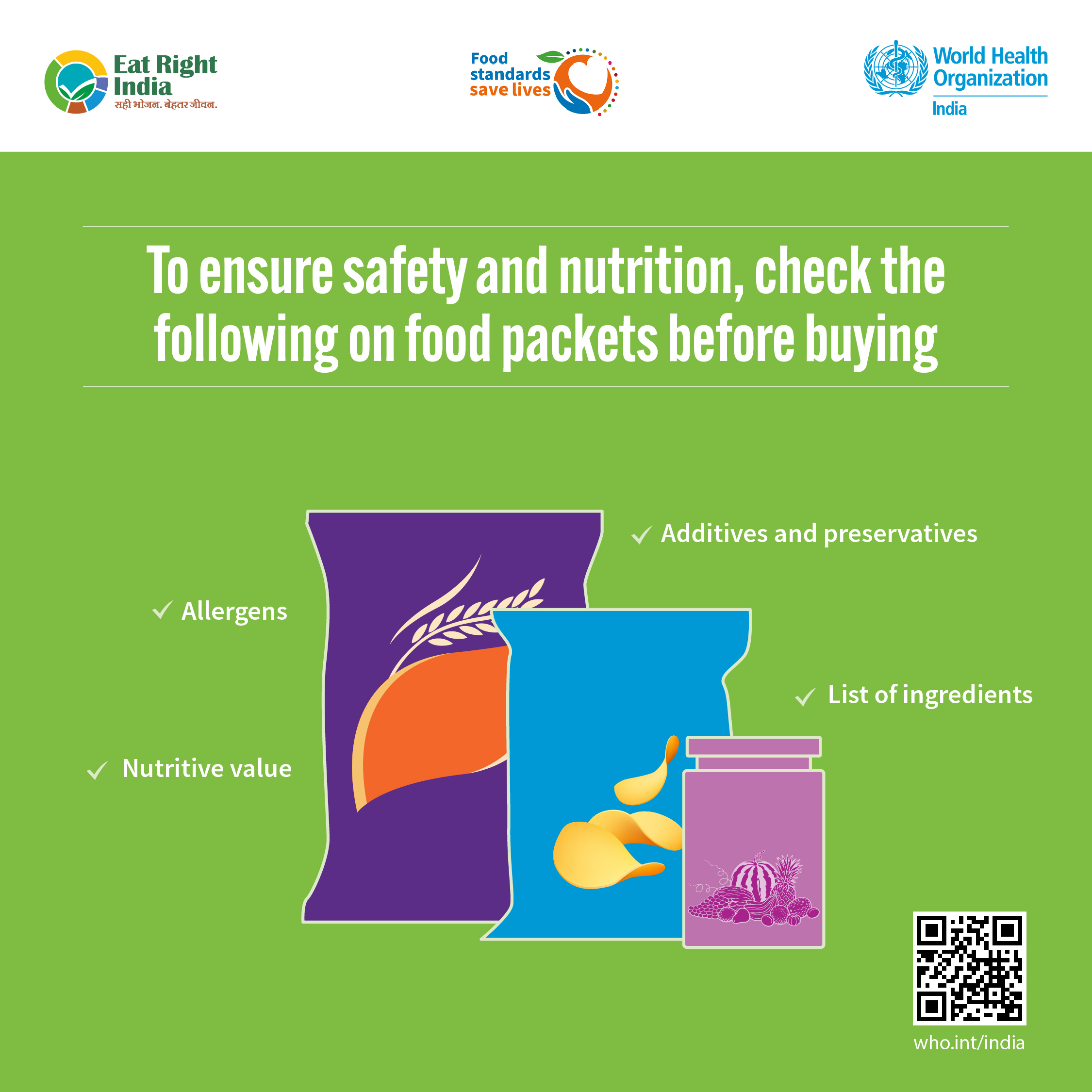 To ensure safety and nutrition, check the following on food packets before buying 5 June 2023 | graphics (infographic) WHO Team India