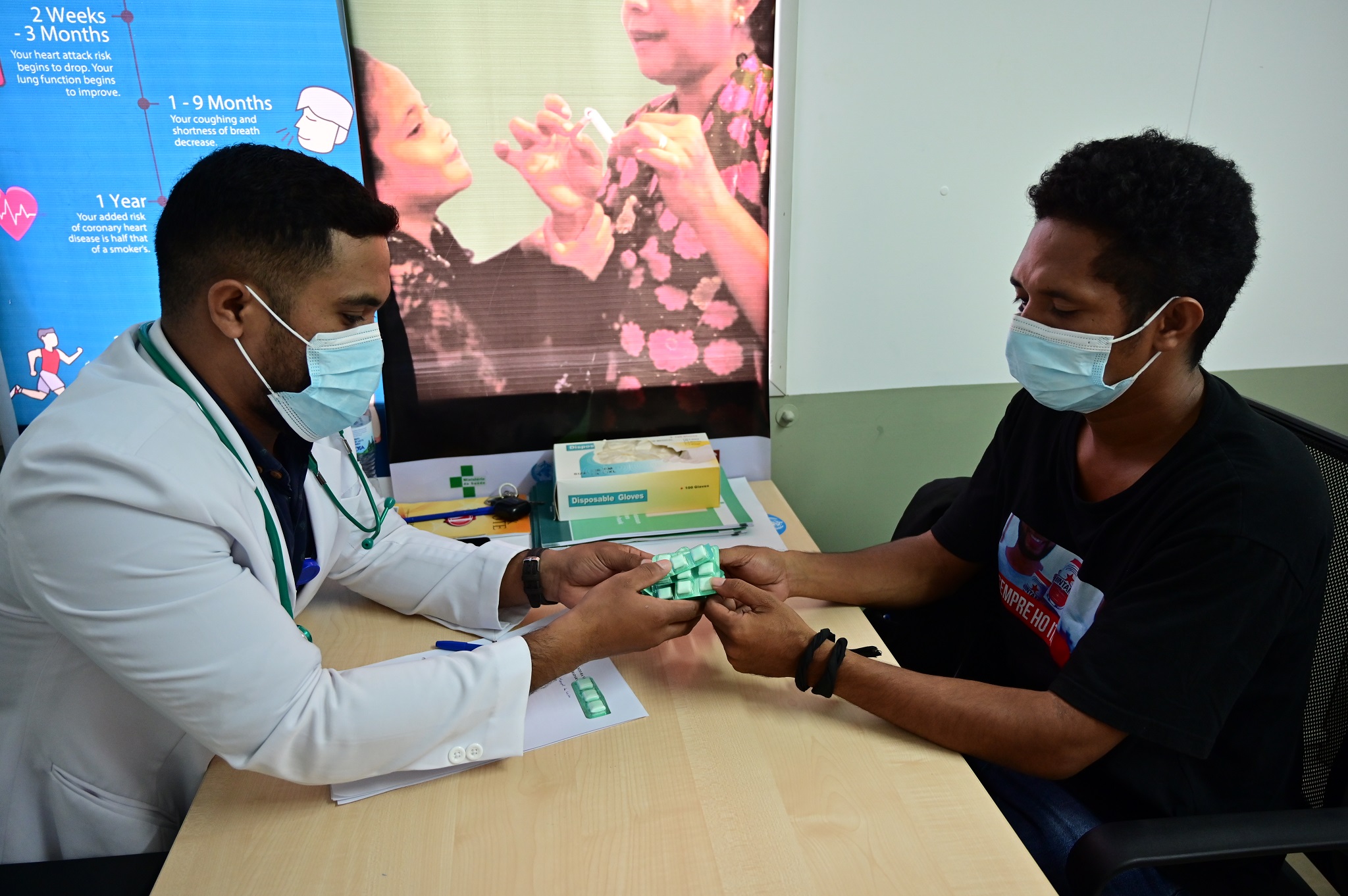 While tobacco surveillance was expanded to monitor tobacco use and control policies, six countries banned ENDS (electronic cigarettes). Bangladesh, India, Indonesia, and Sri Lanka are working towards moving tobacco farmers away from growing tobacco. Bhutan, Nepal, Maldives, Sri Lanka and Timor-Leste have established and scaled-up tobacco cessation services.Counselling to a patient at the Tobacco Cessation Center at Formosa Community Health Center, Timor-Leste