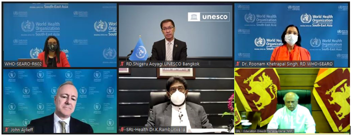 The Education and Health Ministers of Member States of the WHO South-East Asia Region (SEAR) pledged to revitalize Health Promoting Schools on Tuesday 12 October 2021. The meeting was organized by WHO with UNESCO, UNICEF, UNFPA and WFP. Hon. Minister of Education, Mr. Dinesh Gunawardena, and Hon. Minister of Health, Dr Keheliya Rambukwella, participated representing Sri Lanka.