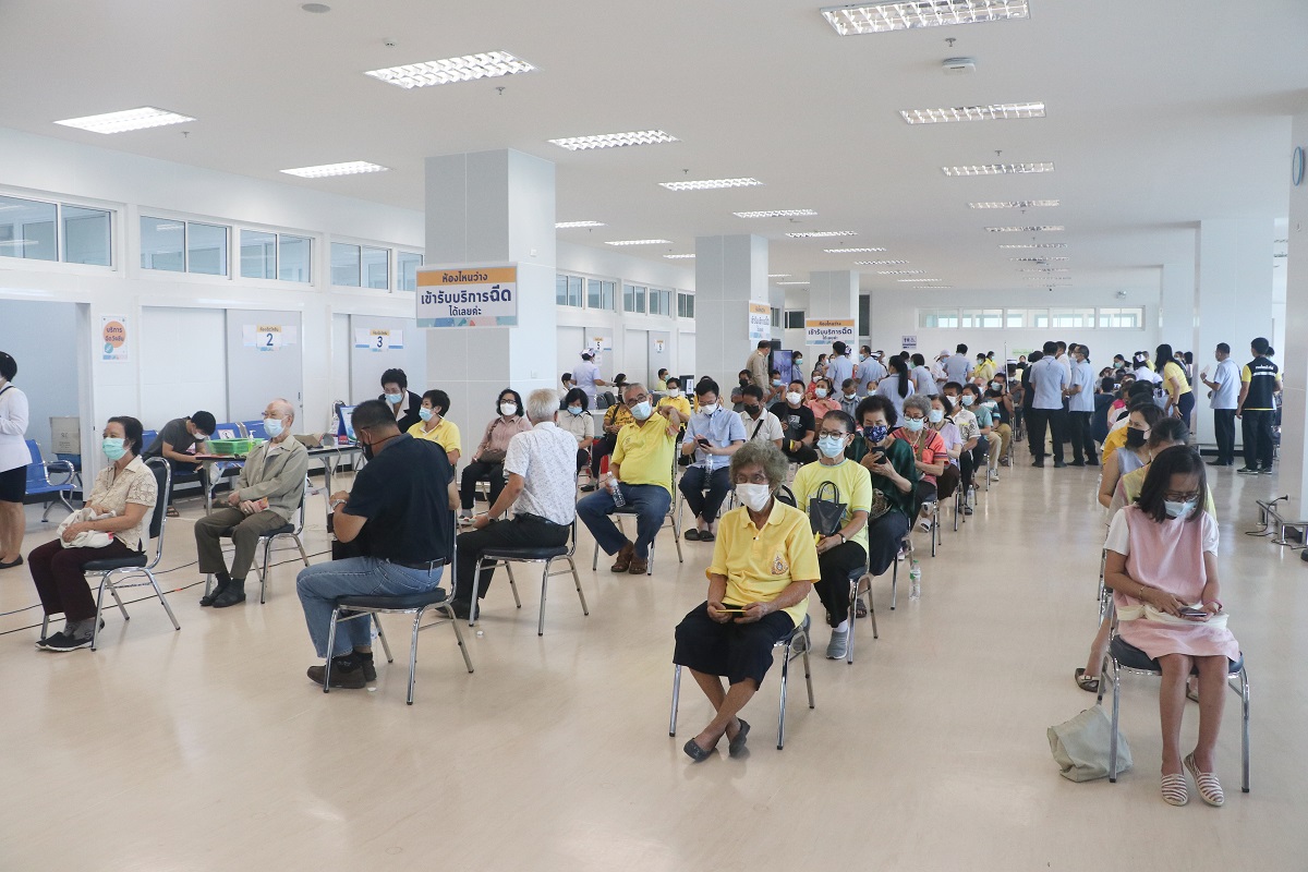 Residents of Mae Sot District wait to receive COVID-19 vaccines at the Maesot General Hospital