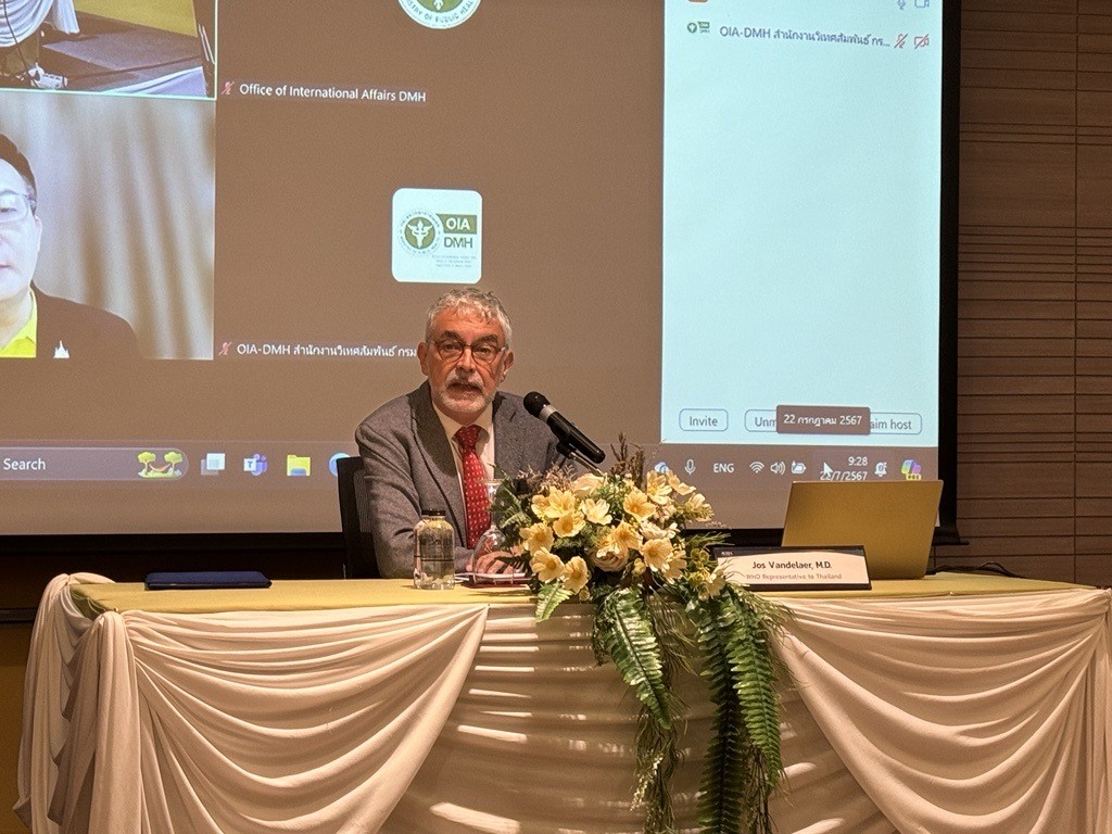 Dr. Jos Vandelaer at the 2nd International Mental Health Workforce Training Program with a call to action for enhanced mental health services. © WHO Thailand 2024