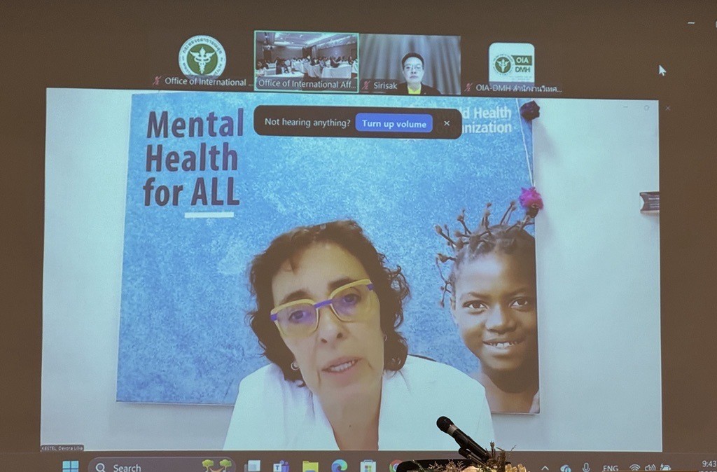 Dr. Andrea Bruni, WHO South-East Asia, Mental Health Regional Advisor, presented a regional overview of the situation of mental health in the Region and the support that WHO is providing to Thailand and other Member States. He stated that mental health conditions are highly prevalent and affect 1 in 7 people in the South-East Asia region. He also highlighted the role of the Paro Declaration on universal access to people-centred mental health care and services and the main objectives of the Mental Health Action Plan for the WHO South-East Asia Region 2023-2030.