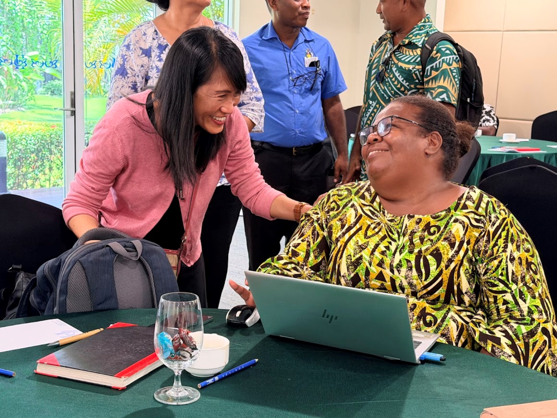 WHO Technical Officer for Immunization Dr SweetC Alipon (left) with MHMS National EPI Coordinator Ms Jennifer Anga. Photo: WHO/Ruel Serrano