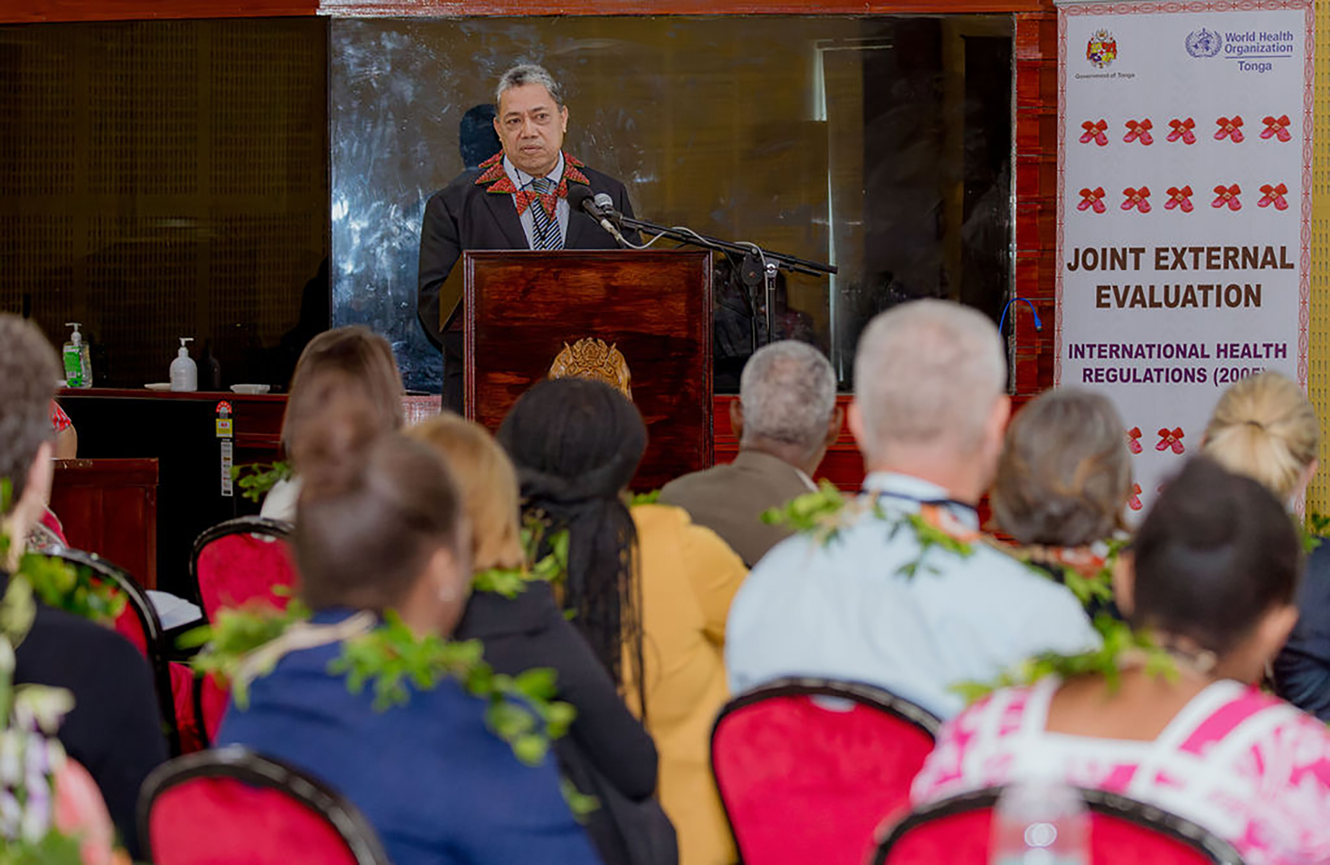 Honourable Dr Siale ‘Akau’ola, Tonga’s Minister of Health, speaks during the opening session of the Joint External Evaluation. © WHO/TiniMedia