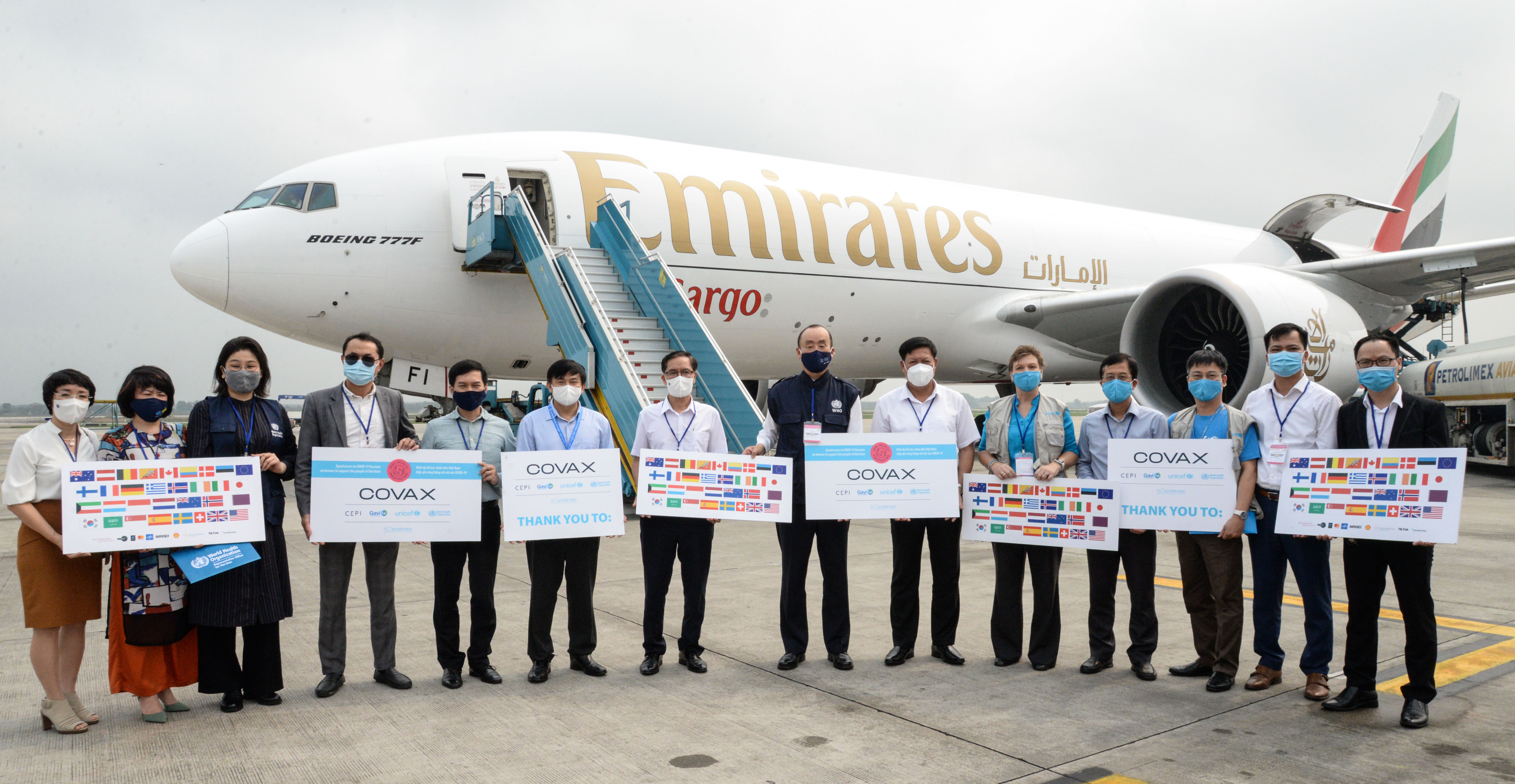 Hanoi, 1st April 2021 - Today, Viet Nam received its first shipment of 811,200 COVID-19 vaccine doses shipped via the COVAX Facility, with support from the World Health Organization (WHO), United Nations Children’s Fund (UNICEF), GAVI, the Vaccine Alliance and Coalition for Epidemic Preparedness Innovations (CEPI). An additional shipment of 3,364,800 doses is expected by the end of May, followed by more later in the year.