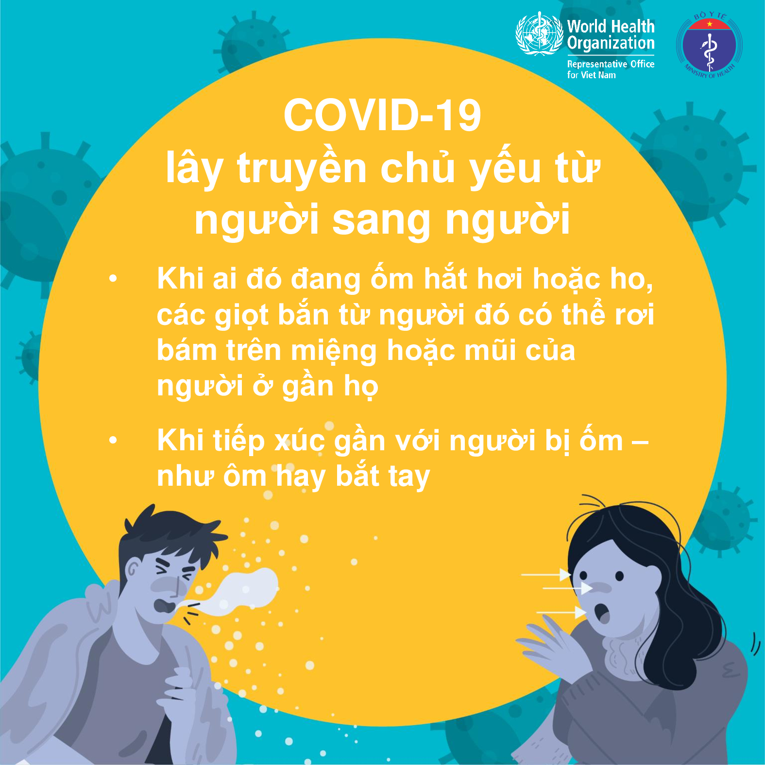 COVID-19 lây truyền chủ yếu từ người sang người. Phòng chống bệnh COVID-19 là trách nhiệm chung của chúng ta.