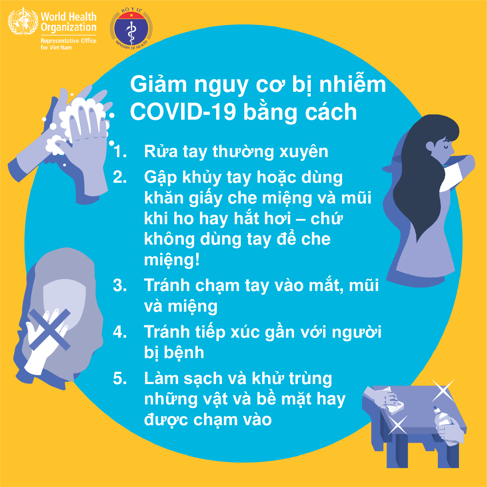 - Hãy che miệng bằng mặt trong của khuỷu tay khi ho hoặc hắt hơi, không dùng bàn tay để che miệng