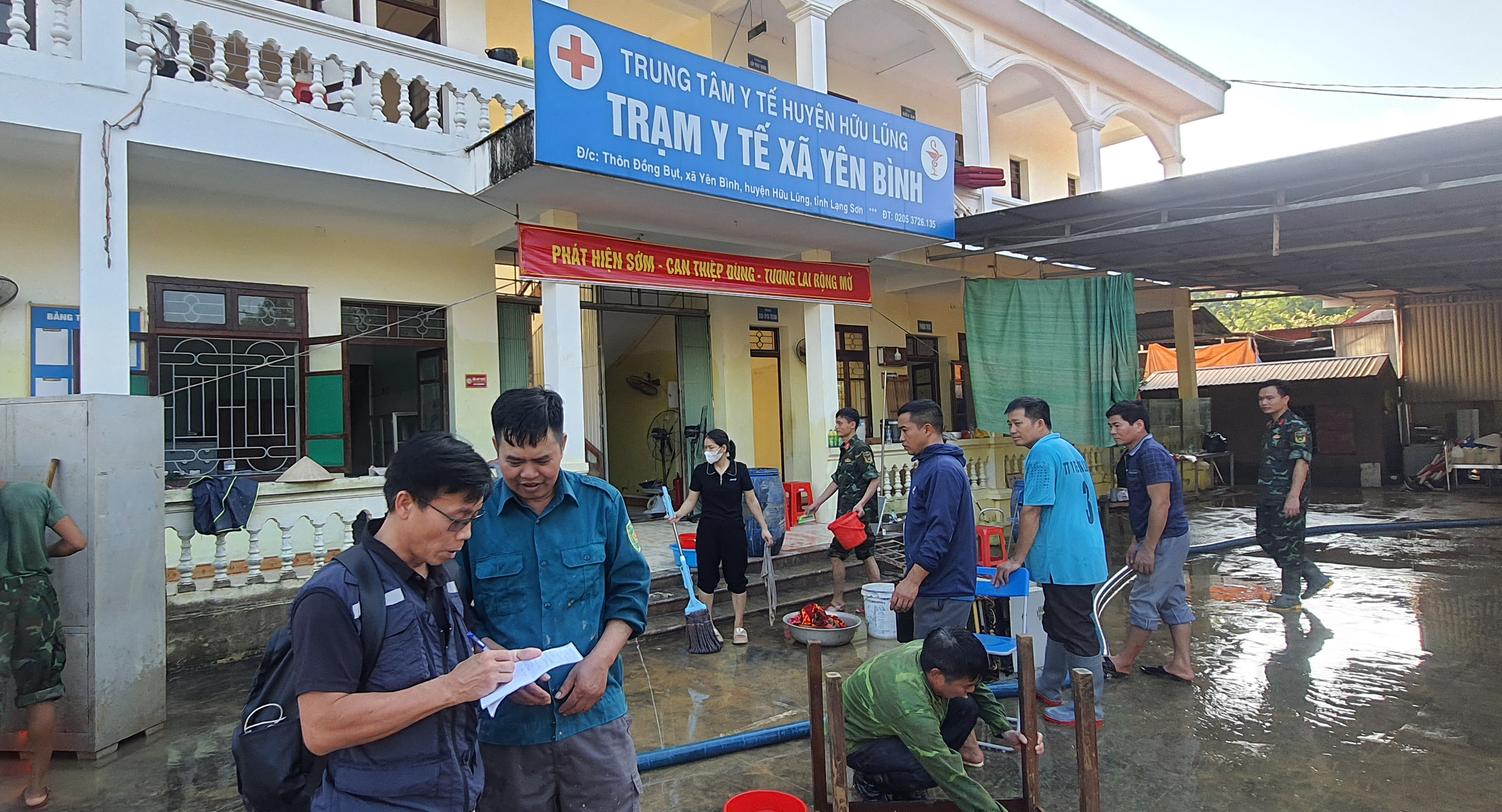 Biến đổi khí hậu khiến thời tiết tại Đà Nẵng và nhiều khu vực khác của Việt Nam trở nên khắc nghiệt hơn. Bác sĩ Vũ Quang Hiếu, Cán bộ Kỹ thuật của WHO (bên trái), khảo sát thiệt hại tại Trạm Y tế xã Yên Bình, tỉnh Lạng Sơn, sau khi trận lũ tháng 10 năm 2025 gây gián đoạn hoạt động chăm sóc sức khỏe. Ảnh: WHO
