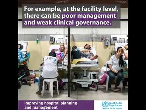Hospitals are the dominant component of health service delivery. Achieving universal health coverage (UHC) is impossible without clearly identifying the role of hospitals and optimizing their performance. Nevertheless, countries continue to struggle to improve hospital planning and management. Facility-level challenges such as weak management, escalating costs, long waiting periods, poor quality and safety, and low patient satisfaction impair hospital performance. At the level of the health system, challenges such as limited integration with primary health care, fragmented funding, weak regulation and inadequate monitoring undermine hospitals’ contributions to population health outcomes.