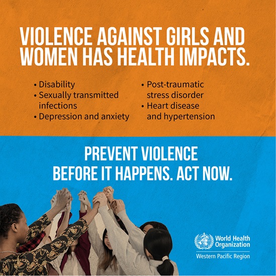 Violence Against Girls and Women Starts Early and Persists Throughout Life.
