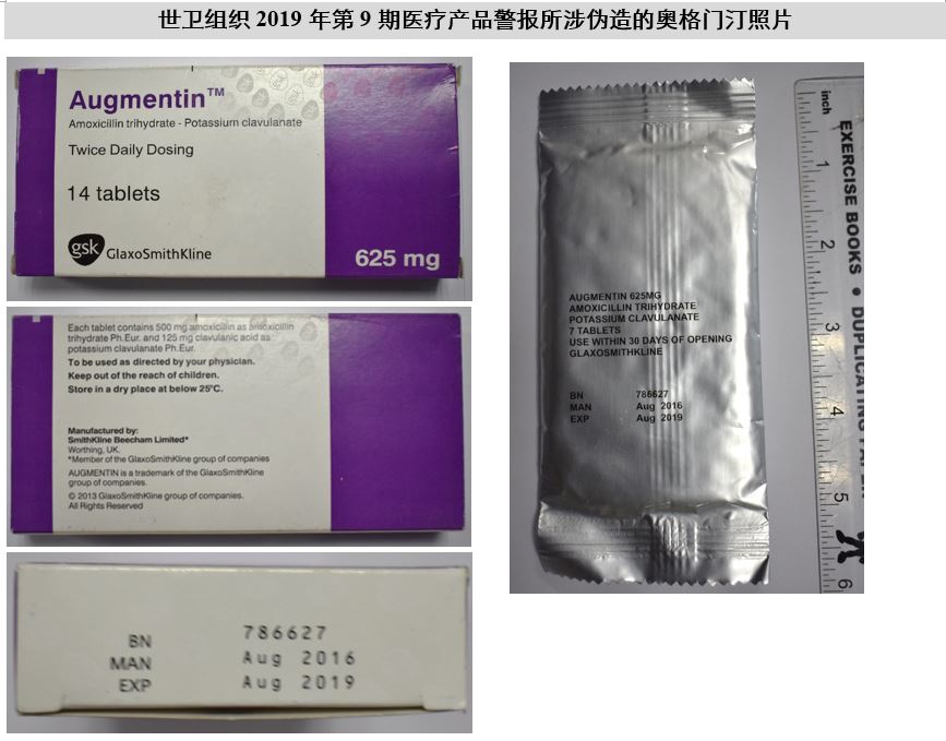 世卫组织最近从乌干达国家药品管理当局获悉,在乌干达市面上发现了伪造的奥格门汀。这是通过对市场上医疗产品质量的常规上市后监测发现的。对送检样本开展了质量保证实验室检测,结果没有发现任何预期的活性成分。肯尼亚药品和毒药管理局证实,此前在肯尼亚市面上发现了同一批伪造的奥格门汀