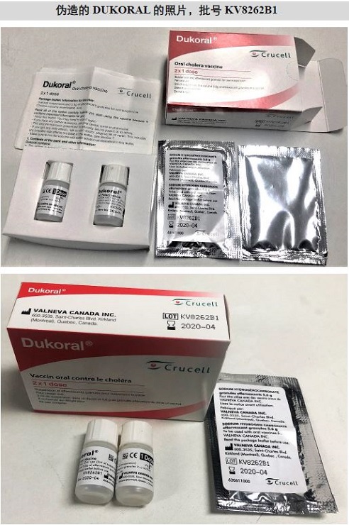 最近,生产商Valneva告知世卫组织,有8000盒伪造的口服霍乱疫苗Dukoral在孟加拉国被分发。孟加拉国的世卫组织国家办事处和卫生当局已对迄今确认的伪造疫苗进行了隔离。
