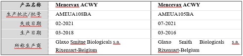 正宗的Mencevax ACWY疫苗由GSK为辉瑞制造,后者拥有营销许可。关于在表1中详述的产品,两家公司均声明: